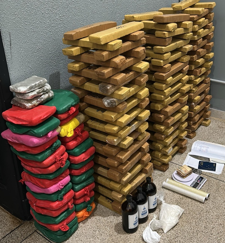 Os policiais realizaram a abordagem e encontraram no veículo dois tijolos de maconha. Posteriormente, eles descobriram o endereço dos homens e foram até o local. No apartamento, foram apreendidos mais tijolos da mesma droga, além de porções de cocaína e R$ 3,5 mil em espécie.