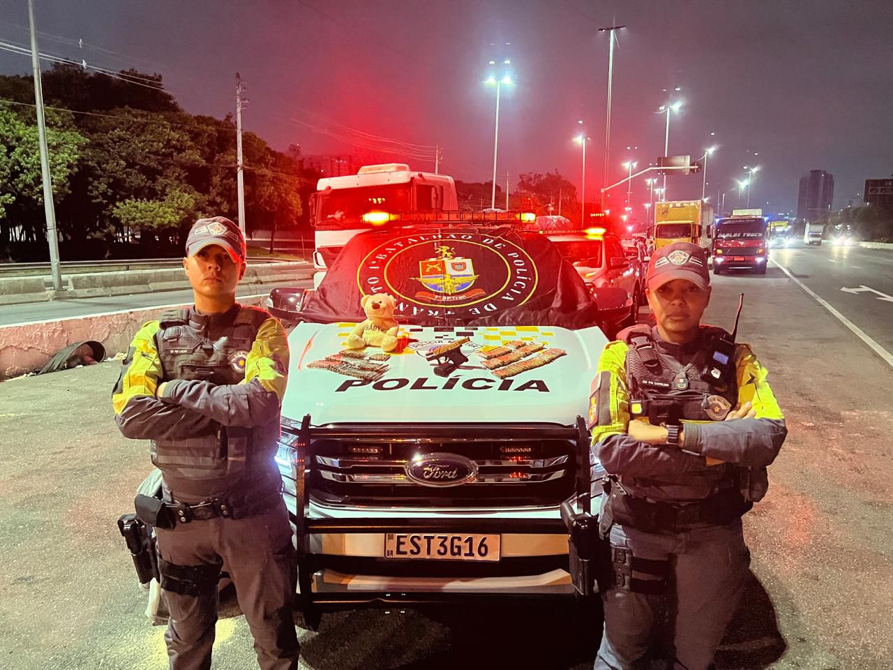A Polícia Militar prendeu nesta sexta-feira (6), na Marginal do Tietê, em São Paulo, uma mulher que transportava munições de fuzil presas ao corpo com fita adesiva e outras escondidas em um urso de pelúcia.