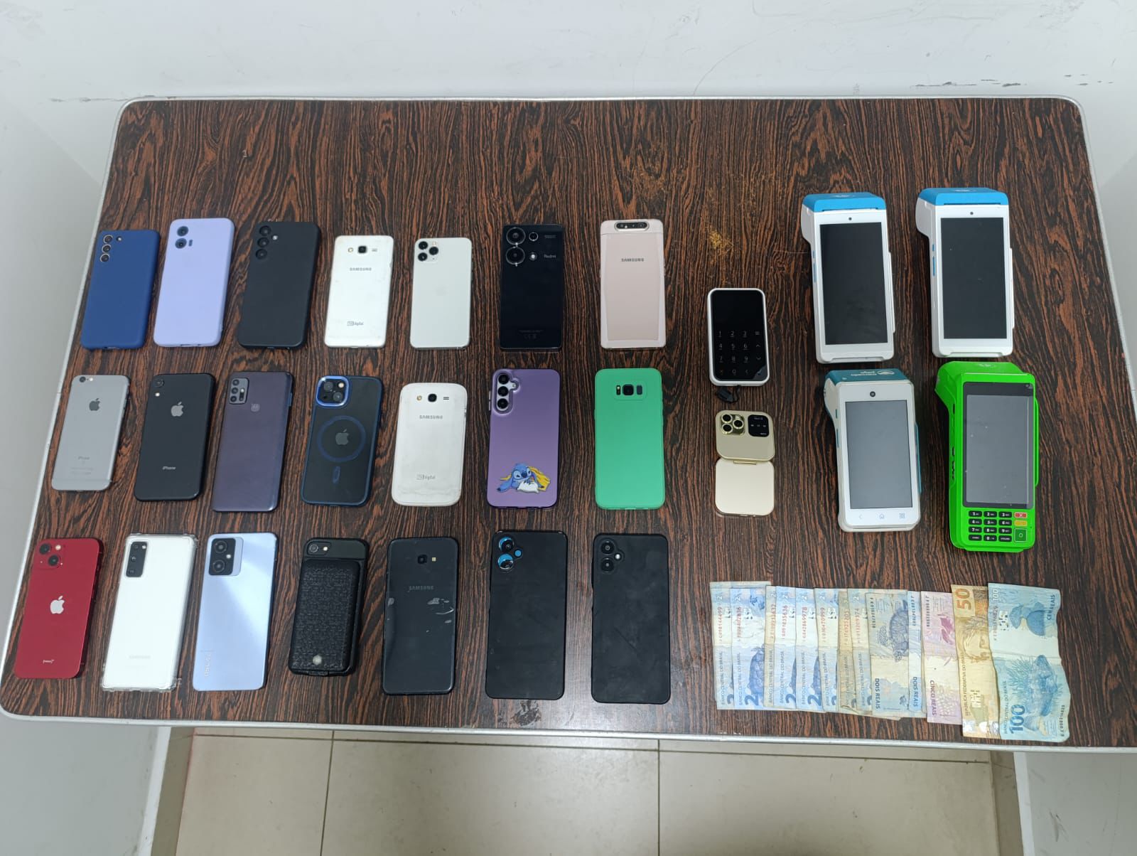 Além dos aparelhos, foram apreendidos cinco máquinas de cartão, além de uma quantia em dinheiro. O autor foi detido e encaminhado à delegacia, onde permaneceu à disposição da Justiça. O caso foi registrado como receptação no 8° Distrito Policial (Brás).